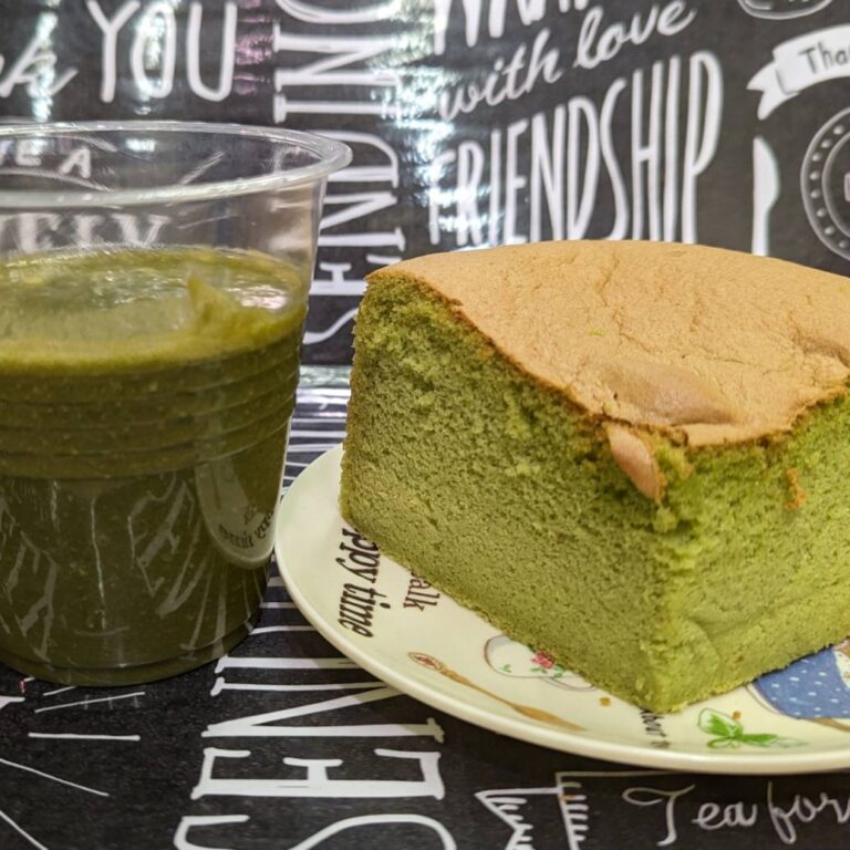小松菜とニンジン、凍らせたフルーツの入ったグリーンスムージー。小松菜の栄養素をふんだんに取ることが出来ます。米粉、豆乳使用の台湾カステラはふわっふわっで大人気!