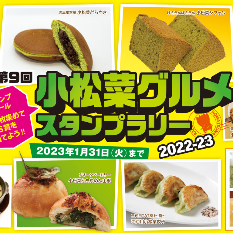 「第6回小松菜グルメスタンプラリー2019-20」参加店舗の「海鮮大衆酒場 二代目うごう 西葛西店」が閉店しました。 そのため、小松菜グルメスタンプラリーの押印対応ができません。 スタンプラリー参加者の方には大変ご不便を…