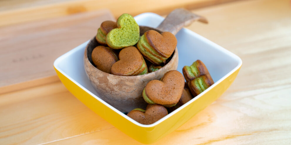 たっぷりのハチミツバターと小松菜パウダーを練り込んだハートのベビーカステラ。真っ赤な車で営業中!冷めてもしっとりふわふわです。おやつや朝食にピッタリです。江戸川土産として大変喜ばれています。※出店も募集中です。
