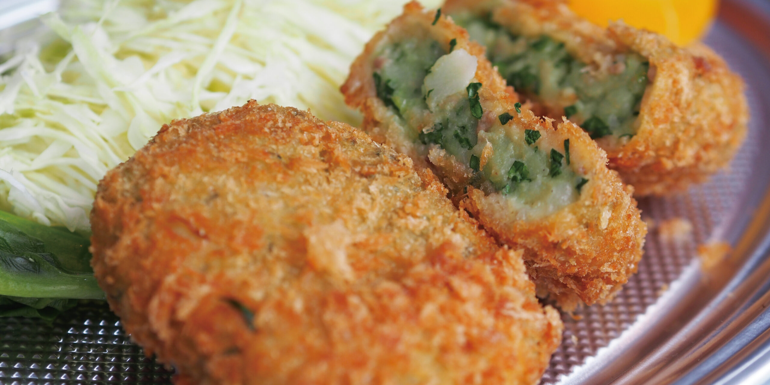 優しい笑顔のご夫婦が出迎えてくれる、昔ながらのお惣菜屋さん。生の小松菜を具に使用しているので、小松菜の香りを楽しめるコロッケです♪