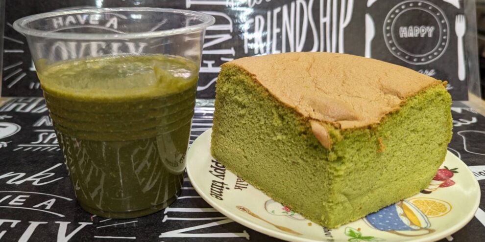 小松菜とニンジン、凍らせたフルーツの入ったグリーンスムージー。小松菜の栄養素をふんだんに取ることが出来ます。米粉、豆乳使用の台湾カステラはふわっふわっで大人気!